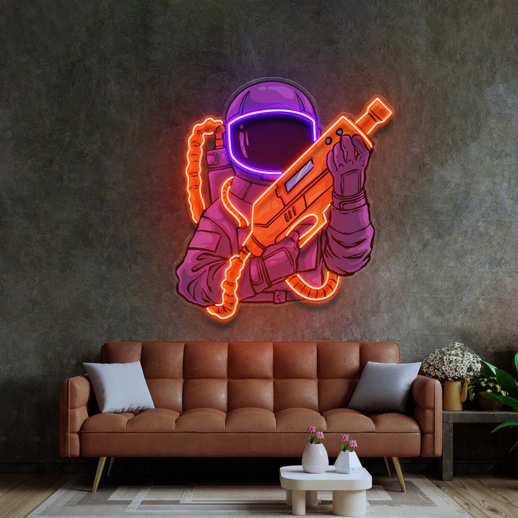 Astronaut Sight Gun Head LED Neon Sign Light Pop Art